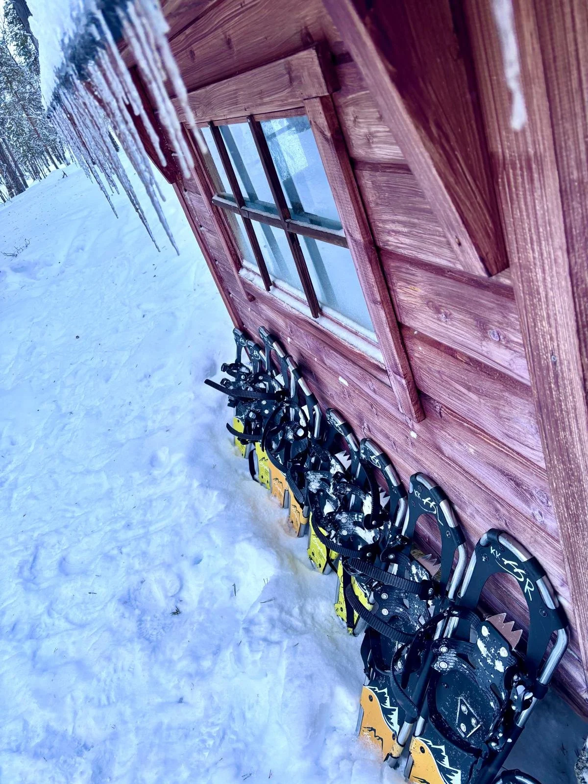 Lumikengät, opastuksen, tikkupullat ja kuuman mehun.